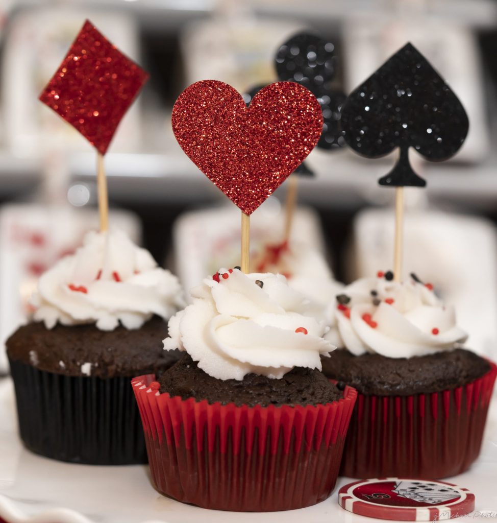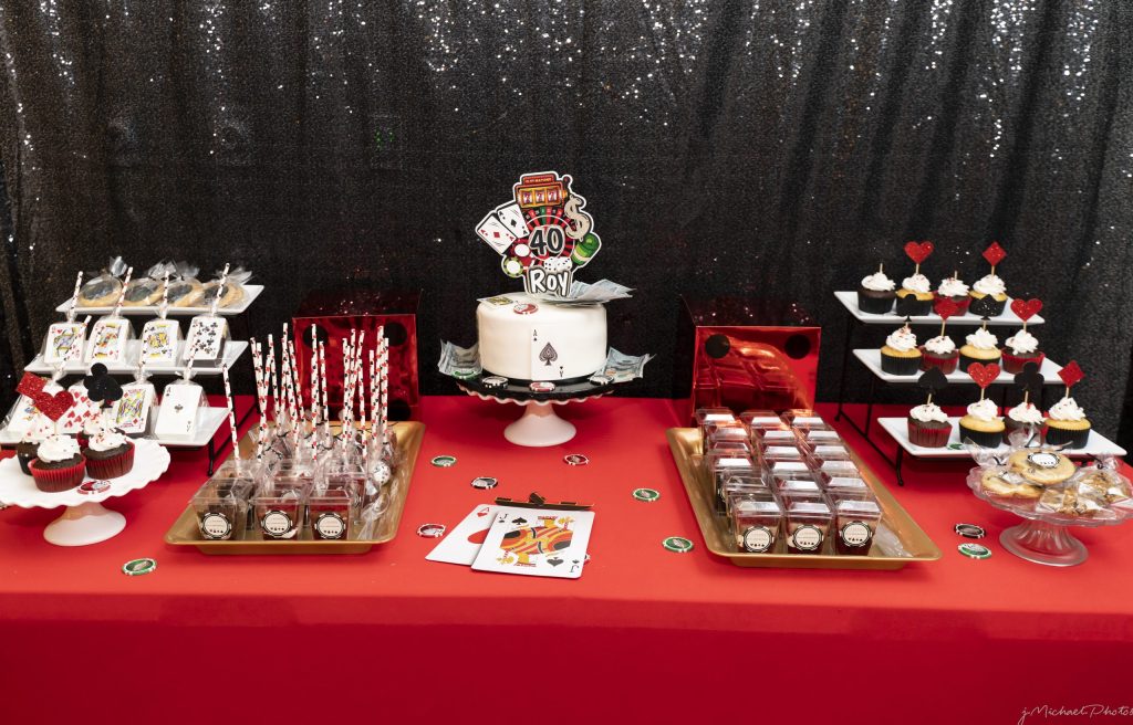 No party is complete without dessert, and this event delivered in a big way. A stunning custom cake adorned with playing card and dice designs served as a centerpiece of the celebration. Guests also indulged in a variety of themed treats, including cookies shaped like poker chips, chocolate-dipped strawberries dusted with edible gold, and cupcakes with tiny fondant playing cards.